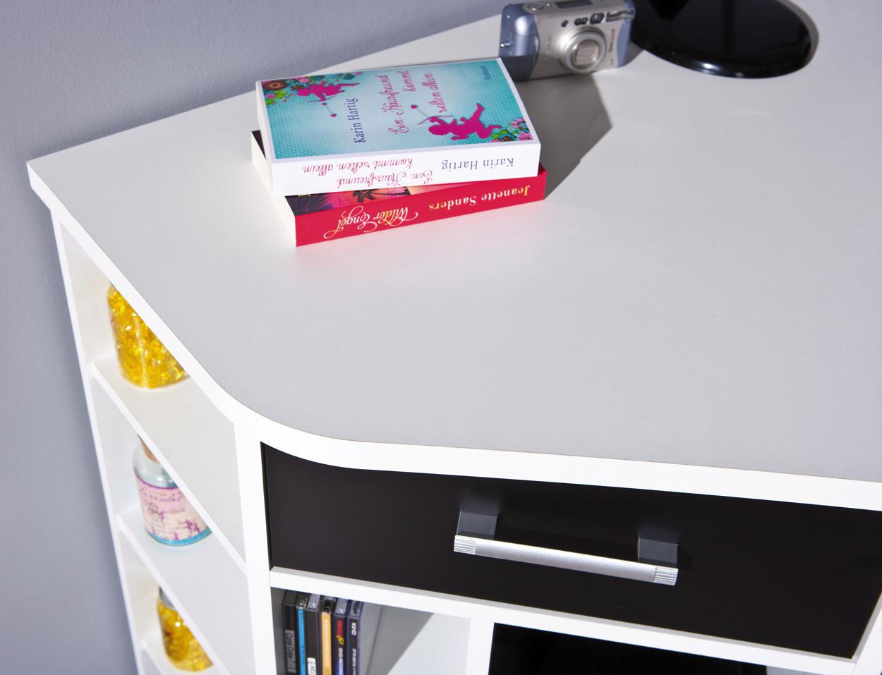 Eckschreibtisch Schwarz Weiß : Eckschreibtisch Schwarz Weiss Online Kaufen Xxxlutz - Ein eckschreibtisch in weiß bietet so einiges, vor allem aber sehr viel platz.. Preise vergleichen und bequem online bestellen! Sie haben platz für rechner, lampe, schreibmaterial und viele andere dinge. Preis ab 74,99 euro (01.10.2020). Das holz ist entweder mit naturlack überzogen und in weiß, schwarz oder unterschiedlichen brauntönen erhältlich. Maja möbel eckschreibtisch kemi weiß fronten hochglanz schenkelmaße: